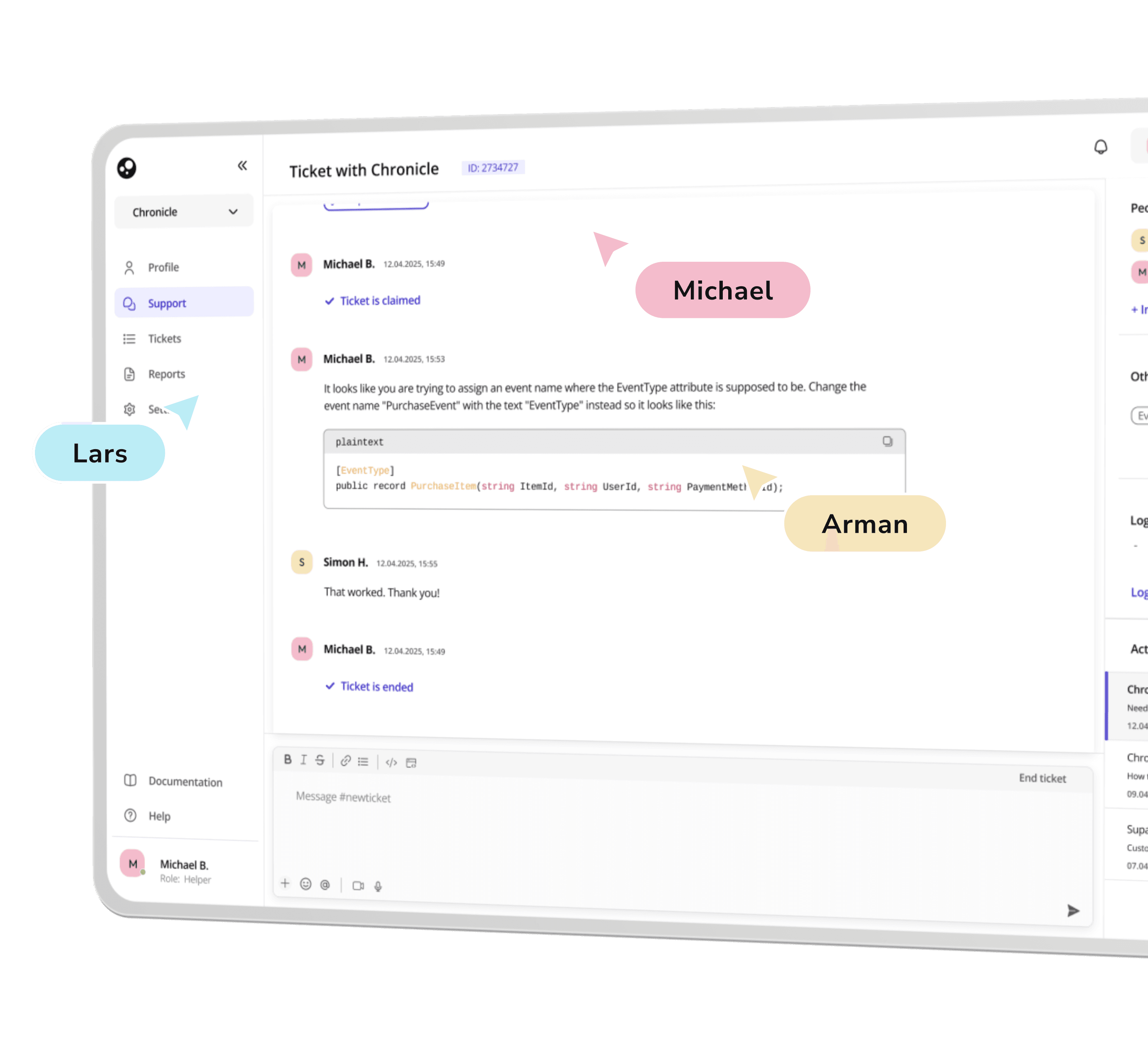Regardless of organisation size, a smooth support experience can give confidence in your product to your users. With Githelp you get an easy-to-use channel for them to solve their issues faster when needed - supplementing any AI-tools they are already using.